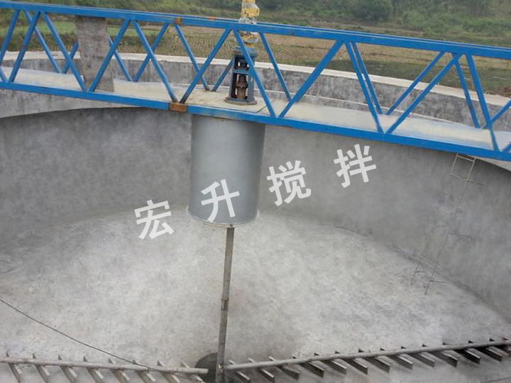 中心傳動刮泥機原水經(jīng)中心配水筒布水后呈輻射流向池子周邊溢水槽,隨著流速的降低,水體中的懸浮物被分離而沉降于池底,上清液通過溢流堰板由出水槽排出池外。